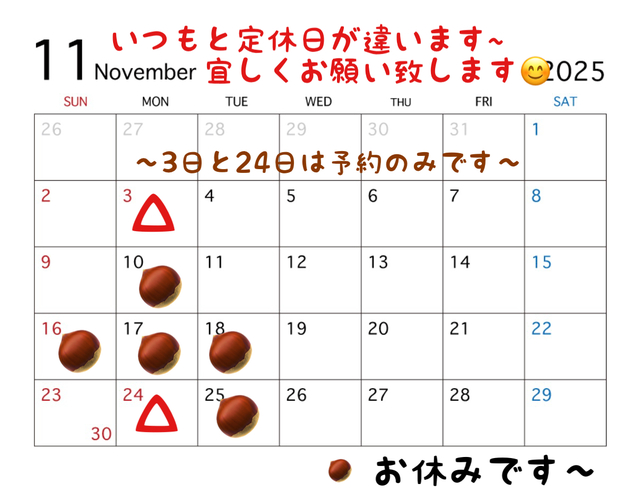 11月のお休み2025年11月04日
